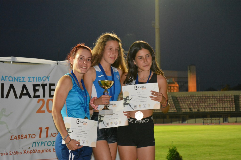 Με τη συγκομιδή επτά μεταλλίων επέστρεψε το σωματείο μας από τα «Βιλαέτεια» στο Πύργο. Σε μεγάλη μέρα βρέθηκε ο Καΐπης Μιχαήλ στο Ύψος Α(2.03μ.) με νέο ατομικό ρεκόρ αλλά και πρώτη θέση , ενώ στην πρώτη θέση επίσης βρέθηκαν και οι Ντουλαπτσή Δάφνη στο τριπλούν Γ (12.39μ.) και Παπανδρεοπούλου Καλλιόπη στο ύψος Γ(1.62μ.).Στα ασημένια μετάλλια βρέθηκαν οι Ανδρεοσόπουλος Άγγελος στο μήκος Α (6.87μ.), η Νεδέλκου Ιωάννα στα 1500μ. (5.02.89) ο Στολάκης Βασίλης στο μήκος Κ16 (5.42μ.) και η Οικονομοπούλου Νάσια στα 80μ. Κ16(8.69μ.). Τέλος, την τρίτη θέση κατέκτησαν ο Μπούργος Λεωνίδας στον ακοντισμό Α (36.74μ.) αλλά και η Αναγνωστοπούλου Ισαβέλλα στα 150μ. Κ18 (20.39).Πολλά συγχαρητήρια αξίζουν και στους Καράμπελα Αφροδίτη , Νιάχου Χρύσα, Παυλόπουλο Νικόλα , Στειακάκη Πάρη ,Λαμπρόπουλου Μαρία ,Παπαιωανου Έφη ,και Σπαράκη Χαρά για την εξαιρετική προσπάθεια που κατέβαλλαν !
